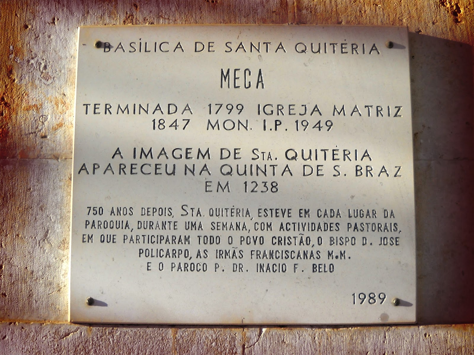 Mas não foi. A Igreja de Santa Quitéria de Meca, classificada como Imóvel de Interesse Público desde 1949, foi construída no Século XVIII, com desenho do ilustre arquitecto Mateus Vicente e o alto patrocínio da Rainha Dona Maria I.